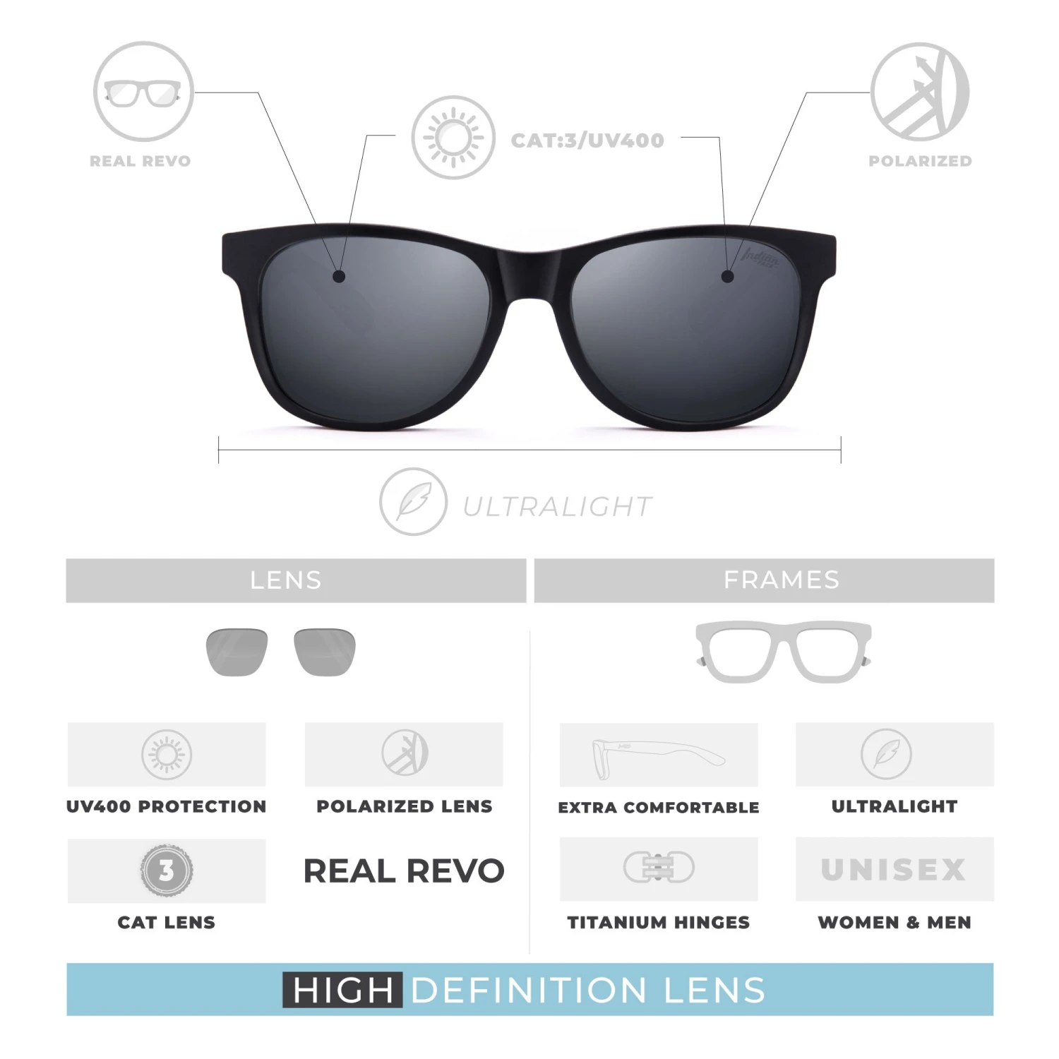 Cuentan con una protección UV400 en categoría 3 siendo así la elección perfecta para practicar deportes acuáticos como de invierno, además de ser perfectas para el uso diario y son aptas para la conducción